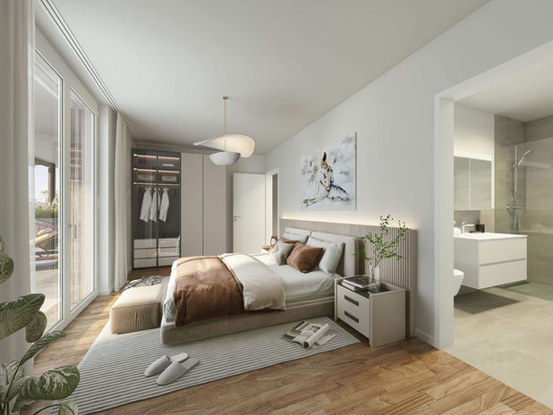Die 26 Wohnungen (2.5, 3.5 und 4.5 Zimmer) überzeugen durch praktische Grundrisse und helle, luftige Räume. Im Hauptwohnraum steht eine offene Küche im Zentrum, der Master-Bedroom verfügt über einen direkten Zugang zum Badezimmer. Ein geräumiges Reduit und ein Waschturm ergänzen das Angebot, zu dem auch eine Tiefgarage und 15 Quadratmeter Keller mit perfekter Lüftung und Entfeuchtung zählen. Einzigartig sind die über 30 Quadratmeter grossen Terrassen, die Aussenschränke und Platz für Lounge und Grill bieten.Der hochwertige Innenausbau mit Feinsteinzeug, edlen Platten- und Parkettbelägen und wählbaren Oberflächen in Küche und Bad lässt viel Raum für individuelle Gestaltungswünsche. Die Überbauung «Am Schlossbach» ist das perfekte Zuhause für Paare und Familien, die in der Freizeit sportlich und urban unterwegs sind, abends aber gerne mal durchs Dorfidyll spazieren oder auf der Terrasse einen Sundowner mit Blick ins Grüne geniessen!